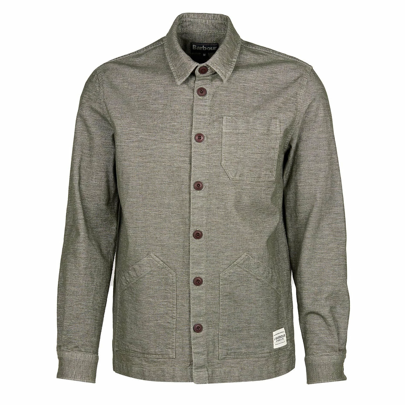 The Barbour Carew Overshirt is a smart-casual and durable layering piece for your wardrobe. Made from a soft cotton in a twisted melange fabric and finished with a Barbour label on the bottom left pocket.