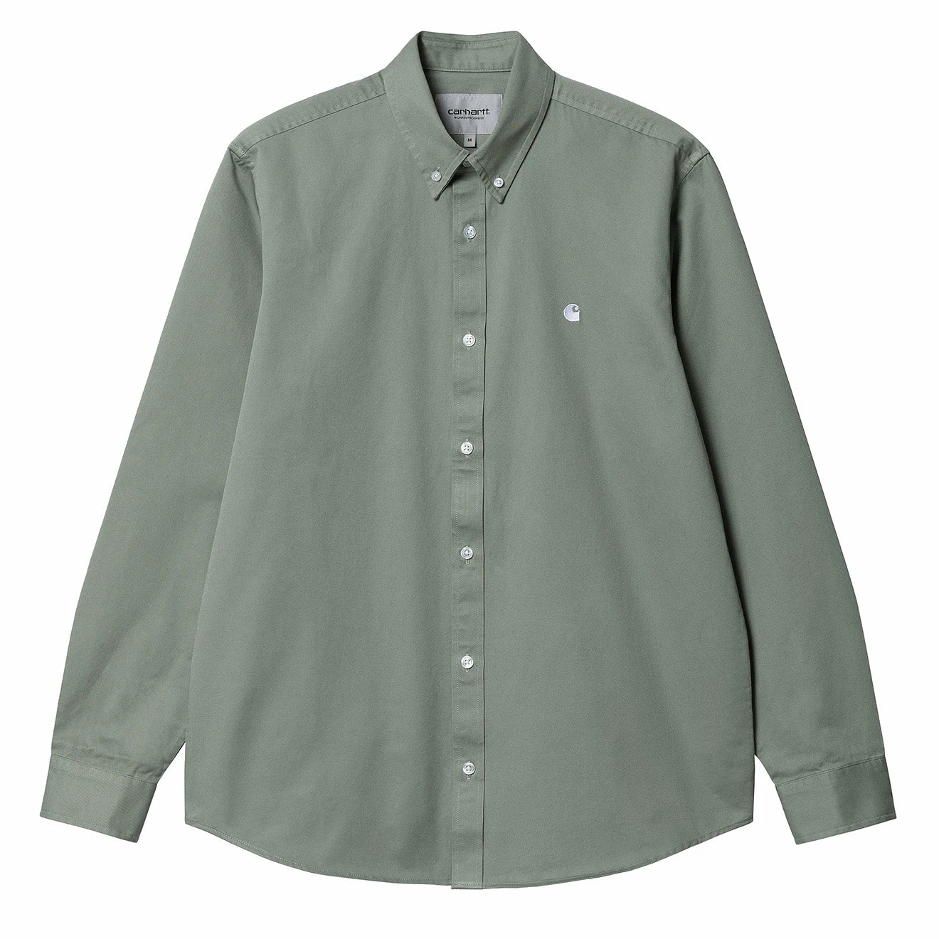 This Carhartt WIP L/S Madison Shirt is a classic button down created in a midweight cotton twill, with a curved hem and contrast button detailing.