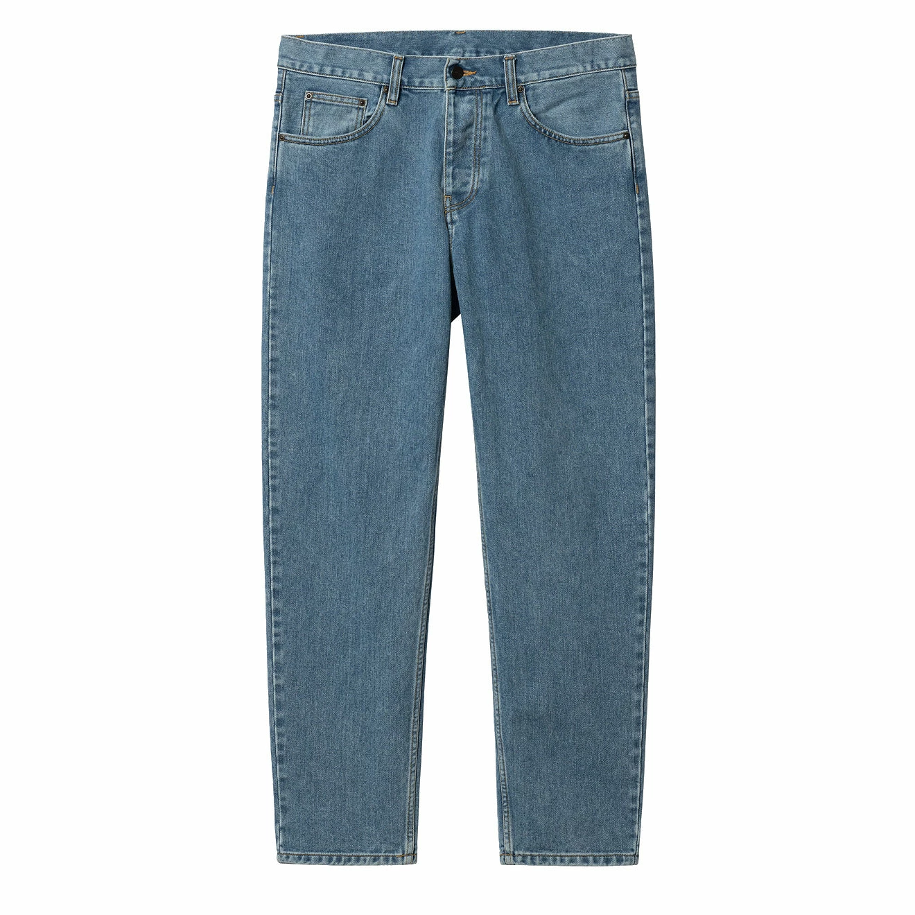 The Newel Pant is a five-pocket style constructed from 13.5 oz Maitland denim and is cut in a relaxed tapered fit with a regular waist. A back yoke and woven Square Label on the rear pocket completes the design. A stone-bleached version, is a much lighter finish.