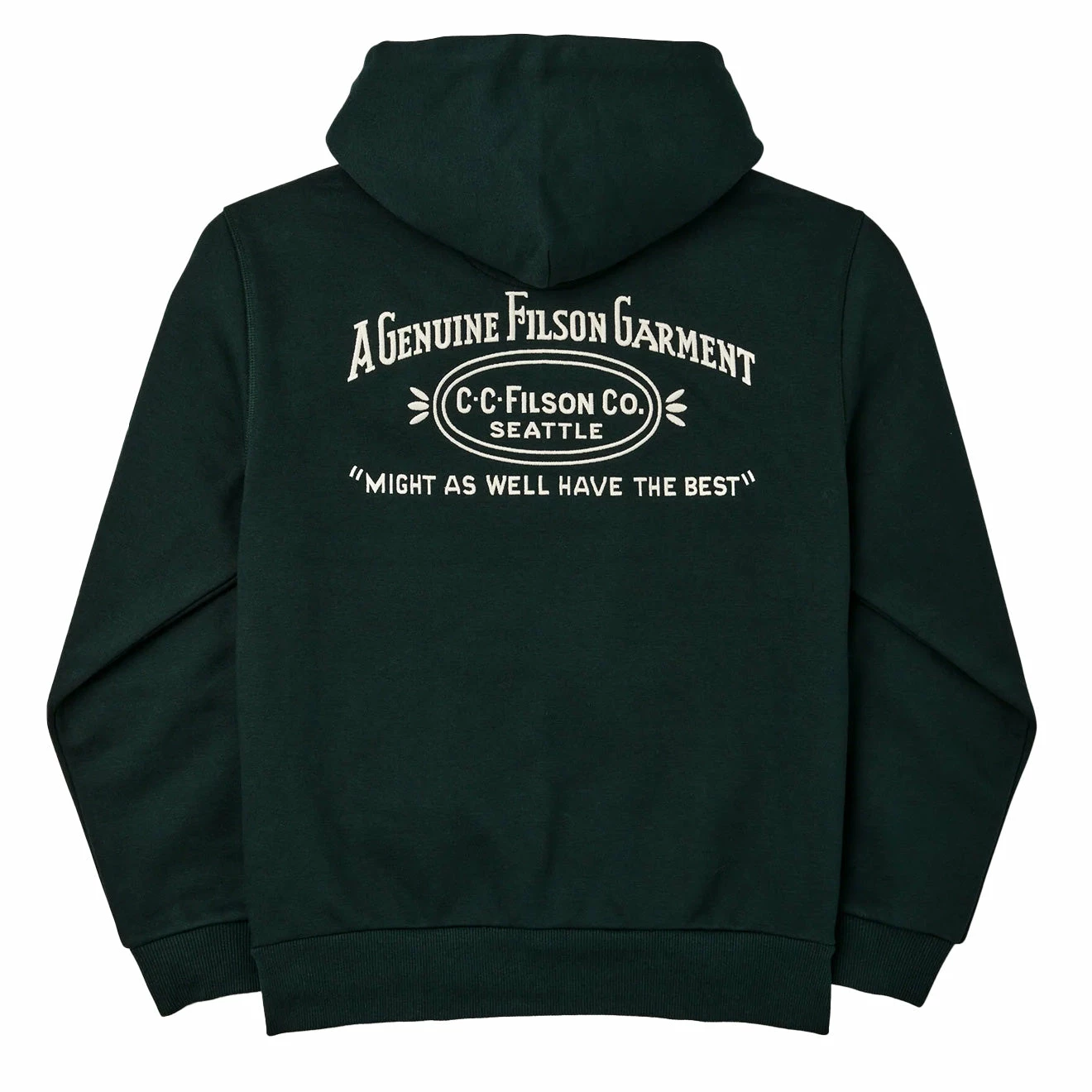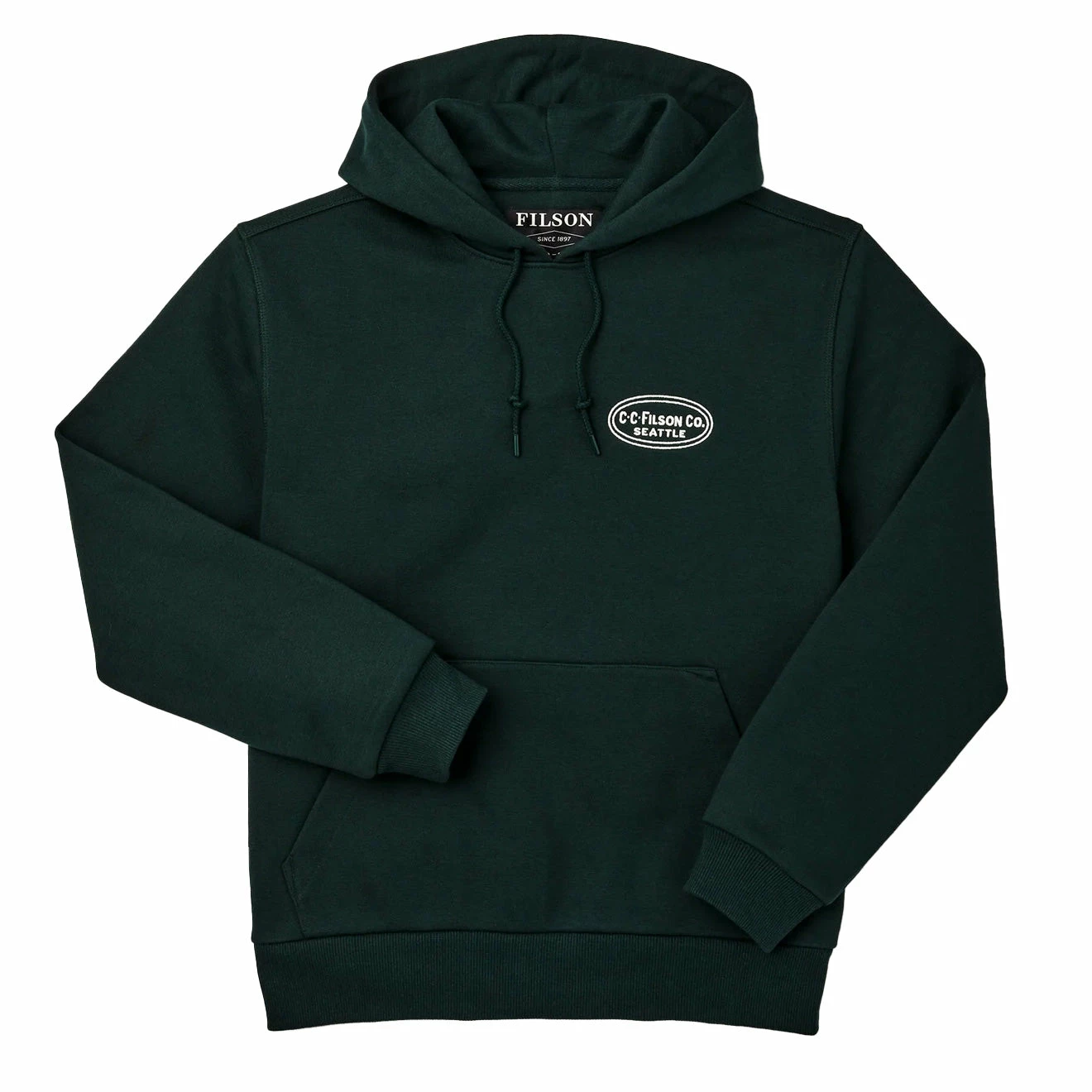 Looking for a classic timeless piece, the Filson Prospector Embroidered Hoodie Fir is your answer. Crafted from a warm, durable classic 13oz fleece which is derived from a cotton blend with the embroidered iconic logo on the font and back. Elevate your essentials.