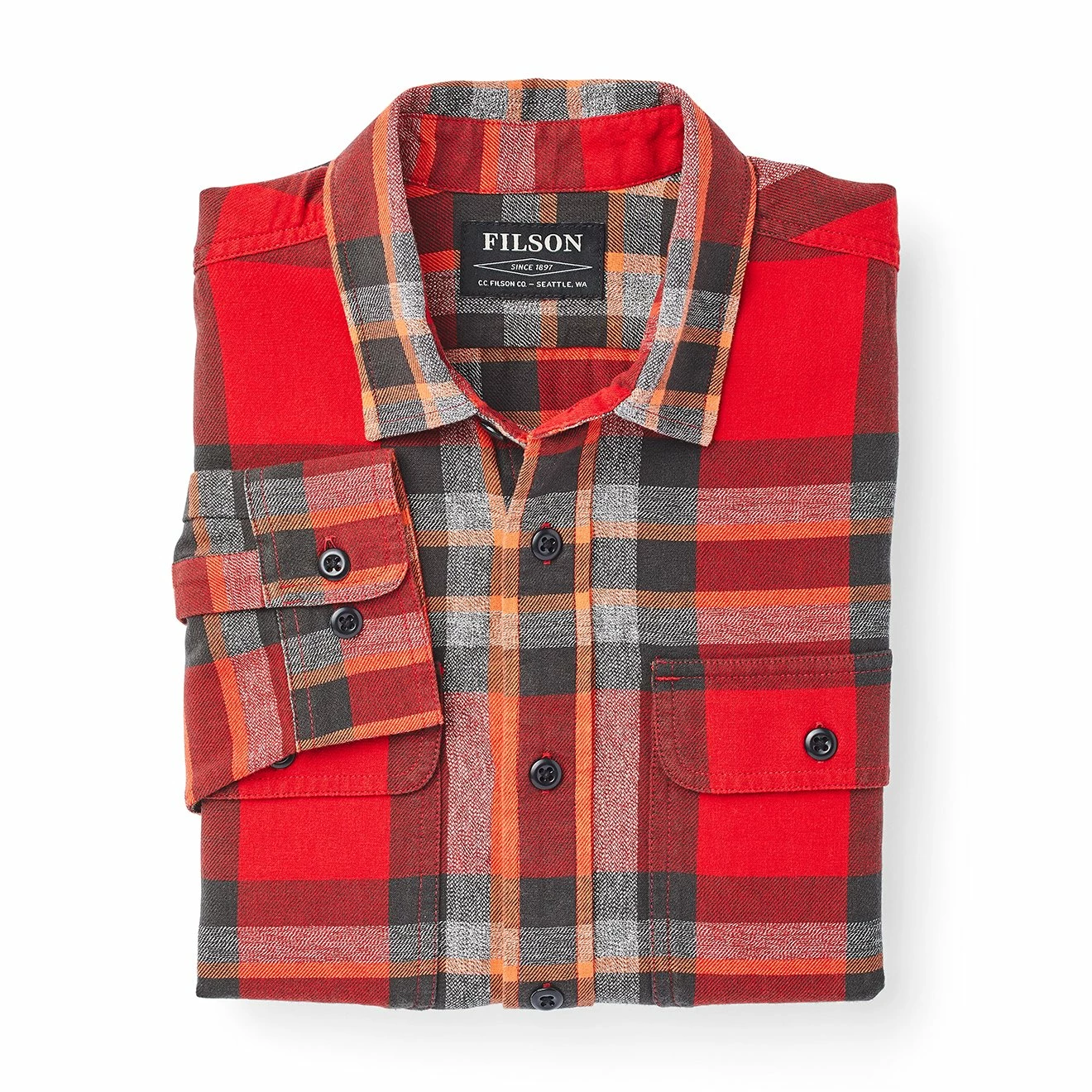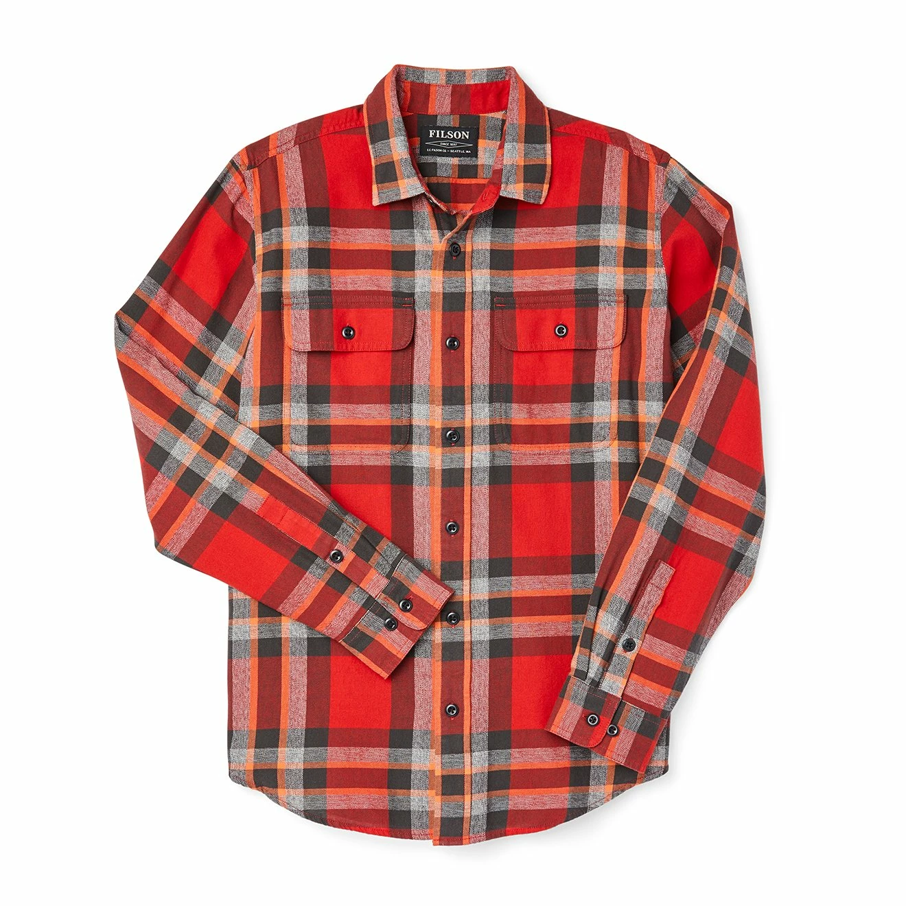 The Filson Scout Shirt in Red, Black and Flame Plaid is an ideal addition to any wardrobe. Providing year round comfort with the 100% cotton twill lightweight material used to craft the shirt. The cotton fabric has been yarn-dyed so that it resists any fading. It features adjustable cuffs and pleated shoulders to provide optimum mobility.
