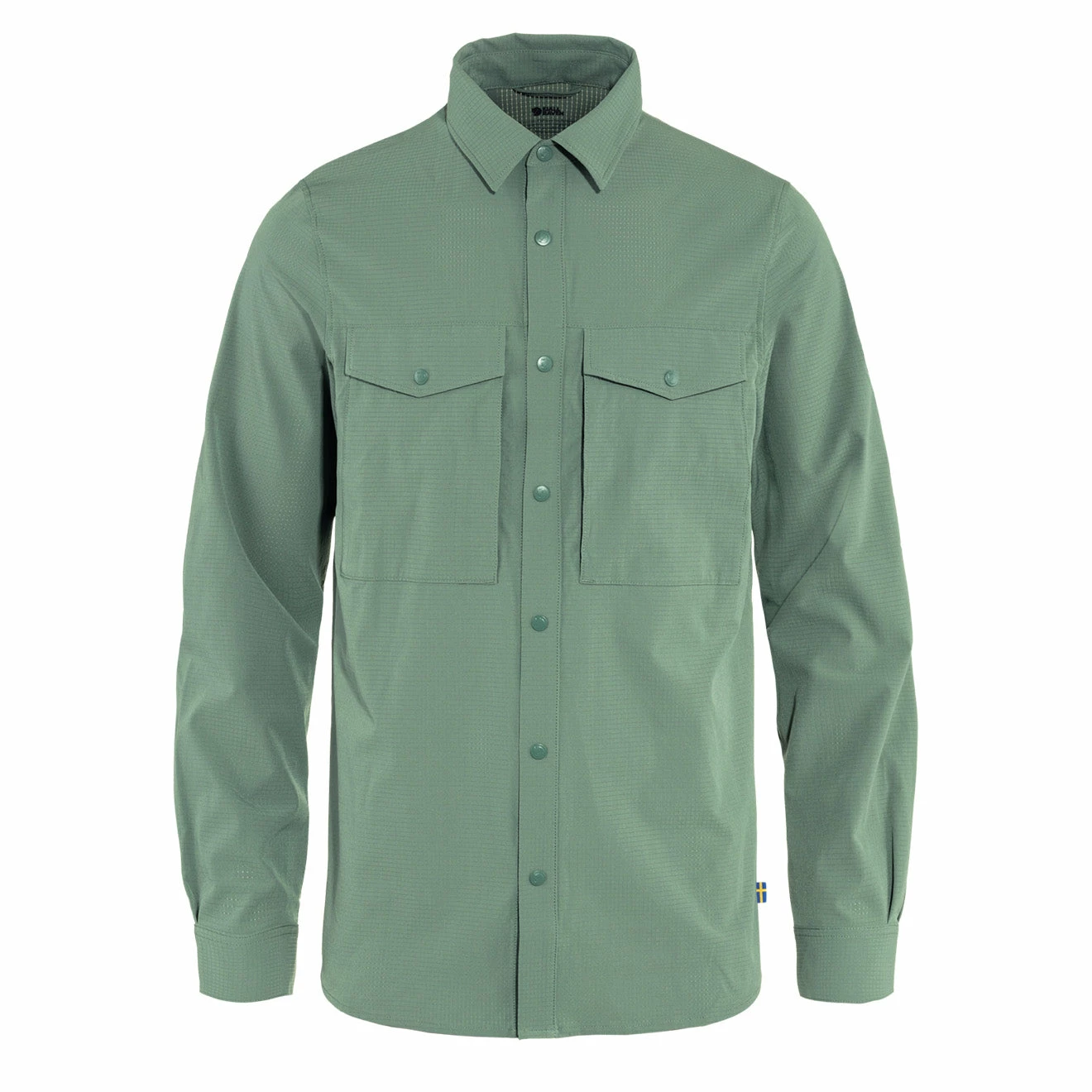 The FJÄLLRÄVEN Trekking Shirt, made from a lightweight, technical fabric that wicks away moisture and lets in air at the same time. The collar can be turned up and secured in place for extra protection against the sun and the vertical chest pockets also function as ventilation openings. Perfect for hiking and travelling, and it can be packed into its own chest pocket.