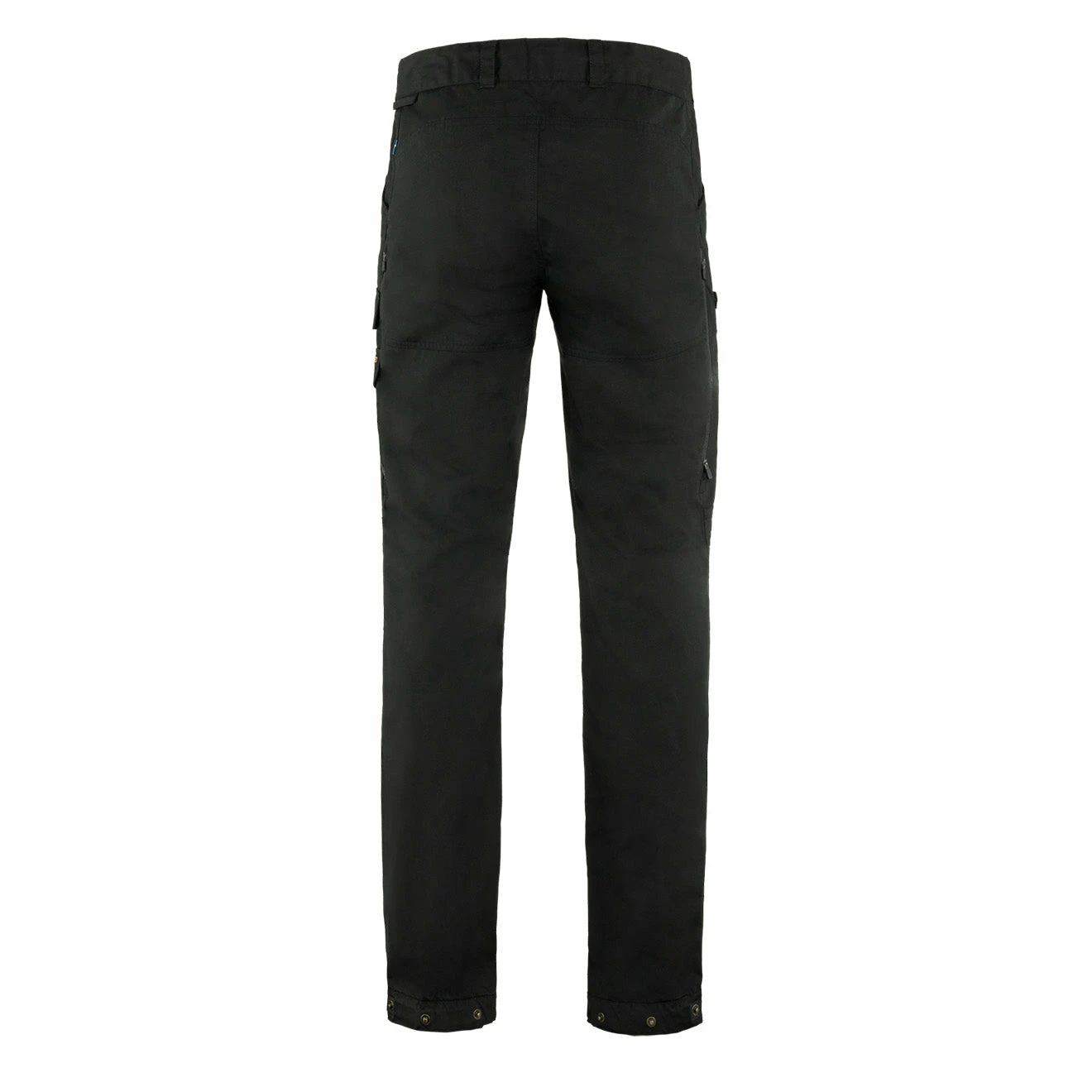 The Fjällräven Vidda Pro Trousers Regular are constructed from G-1000 fabric and feature a mid waist and regular fit with pre-shaped knees, reinforcement in the back and knees, hand pockets, map pocket, multitool pocket, internal phone pocket and openings for knee pads.