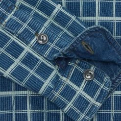 Made with rib-knit cotton jersey that is dyed with true indigo and pigment-printed with a checked pattern. Buttoned throat latch and half-placket. Washed for added softness.