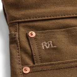 The RRL by Ralph Lauren Slim Fit Full Length Jeans are cut from a Japanese rigid selvedge denim, woven with olive-hued warp yarns and bronze-hued weft yarns. Sanforized® to minimise shrinkage.