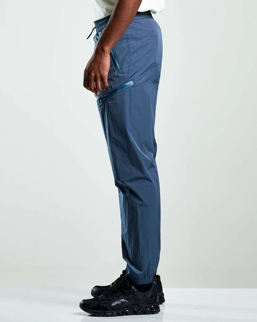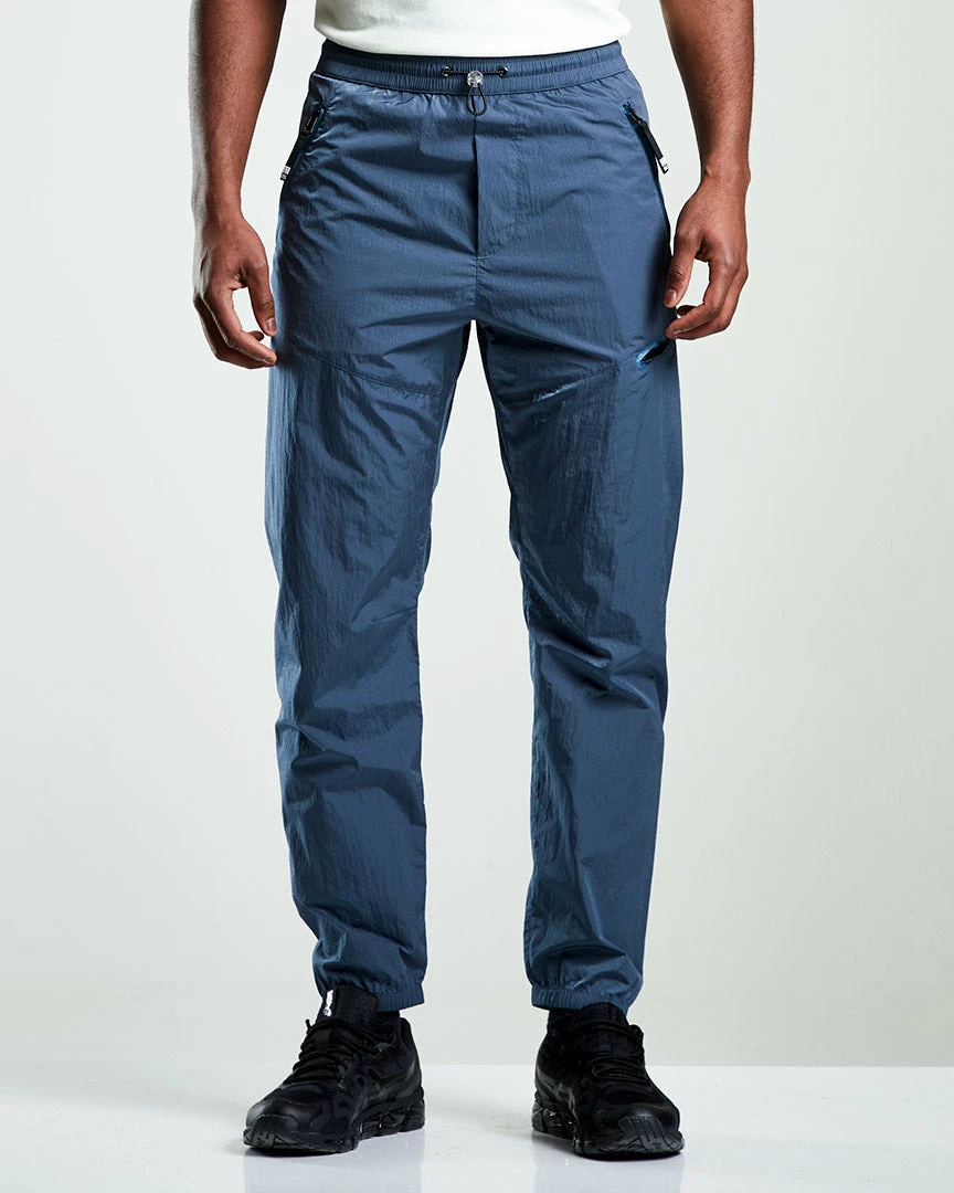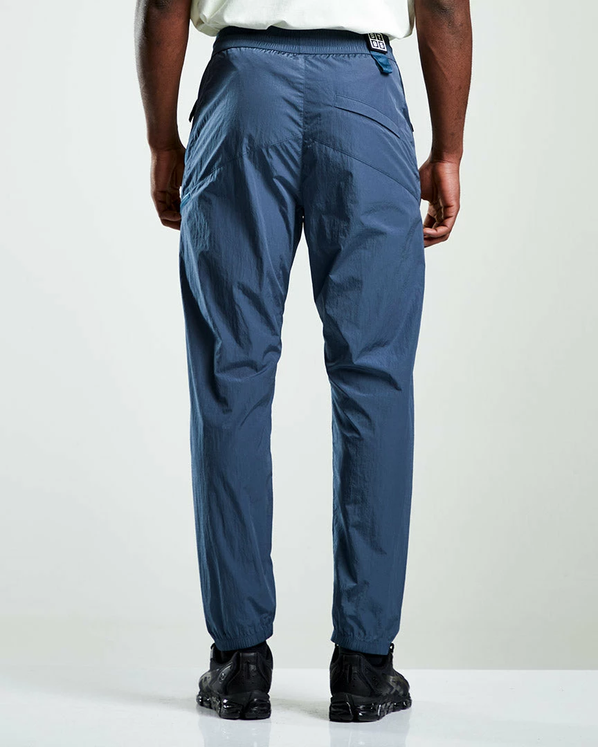 The Tech Track Trouser is manufactured from 100% recycled nylon has a soft, brushed texture and feel. It has multiple pocket options, including a zipped thigh pocket for security and features the detachable ST95 logo patch with taped detail to the waist. The fit is relaxed which tapers down to the ankle.