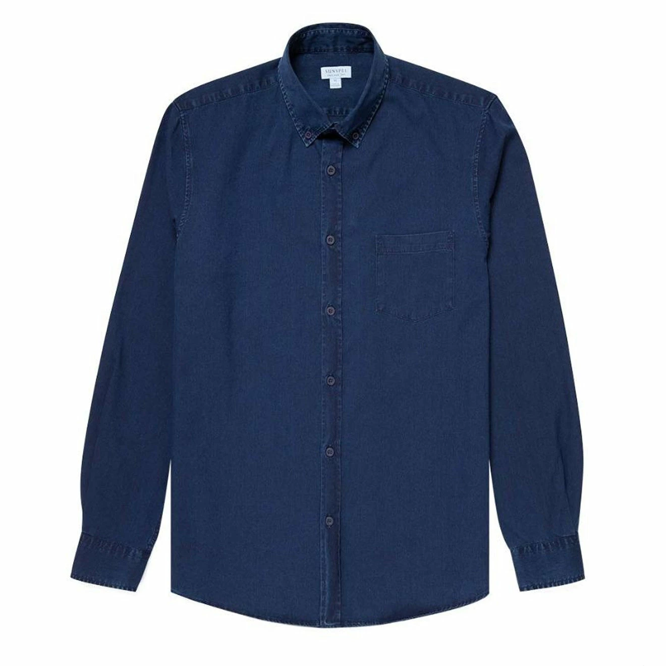 The Sunspel Soft Twill Button Down Shirt features a buttoned collar and a patch pocket. It’s also been garment washed for softness and a relaxed feel.