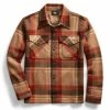 The Woolrich Alaskan Wool Check Overshirt is crafted from a yarn-dyed Melton wool blend, filled with duck down padding and lined in a quilted nylon for added warmth. It’s finished with classic workwear-inspired details – pointed collar and snap button pockets.